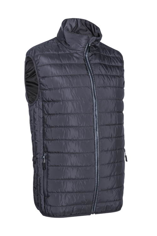 A mellény álló gallérral és cipzárral záródik, mely nyak- és állvédővel ellátott. A fényvisszaverő díszcsík növeli a láthatóságot sötét környezetben. Gumírozott váll- és derékrész biztosítja a kényelmes, stabil illeszkedést.