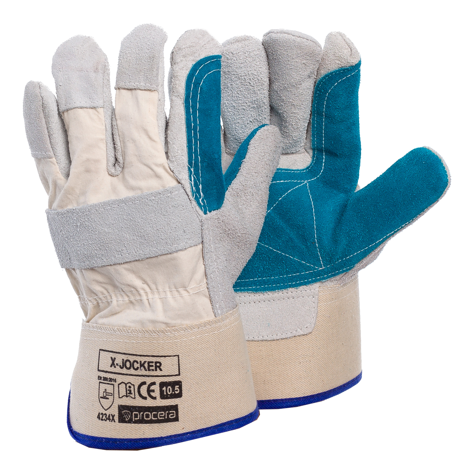 Felső részén pamutszövetből készült, ötujjas, egész tenyérnyi kesztyű. A markolatrész kiváló minőségű tehén hasított bőrből készült, natúr színben. A markolaton, a mutatóujjon és a hüvelykujjnál további, kék tehén hasított bőrből készült megerősítést használtak. A felső részen, a kézközépvonalon és az ujjbegyeken hasított bőr megerősítések is használatosak. A mandzsetta gumírozott és díszítéssel van kidolgozva, amely felett egy bevarrt szorítószalag található, amely biztosítja a kényelmet és a könnyű használatot. A kesztyű nagyon jó tapadást biztosít.